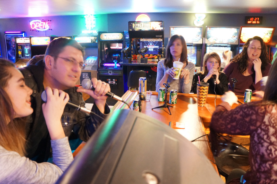 playing games and karaoke. I added 50 new music videos to the 2000+ video jukebox, passed out 4 mics and the evening took off. Next thing we knew, kids were passed out and it was 4:30AM.